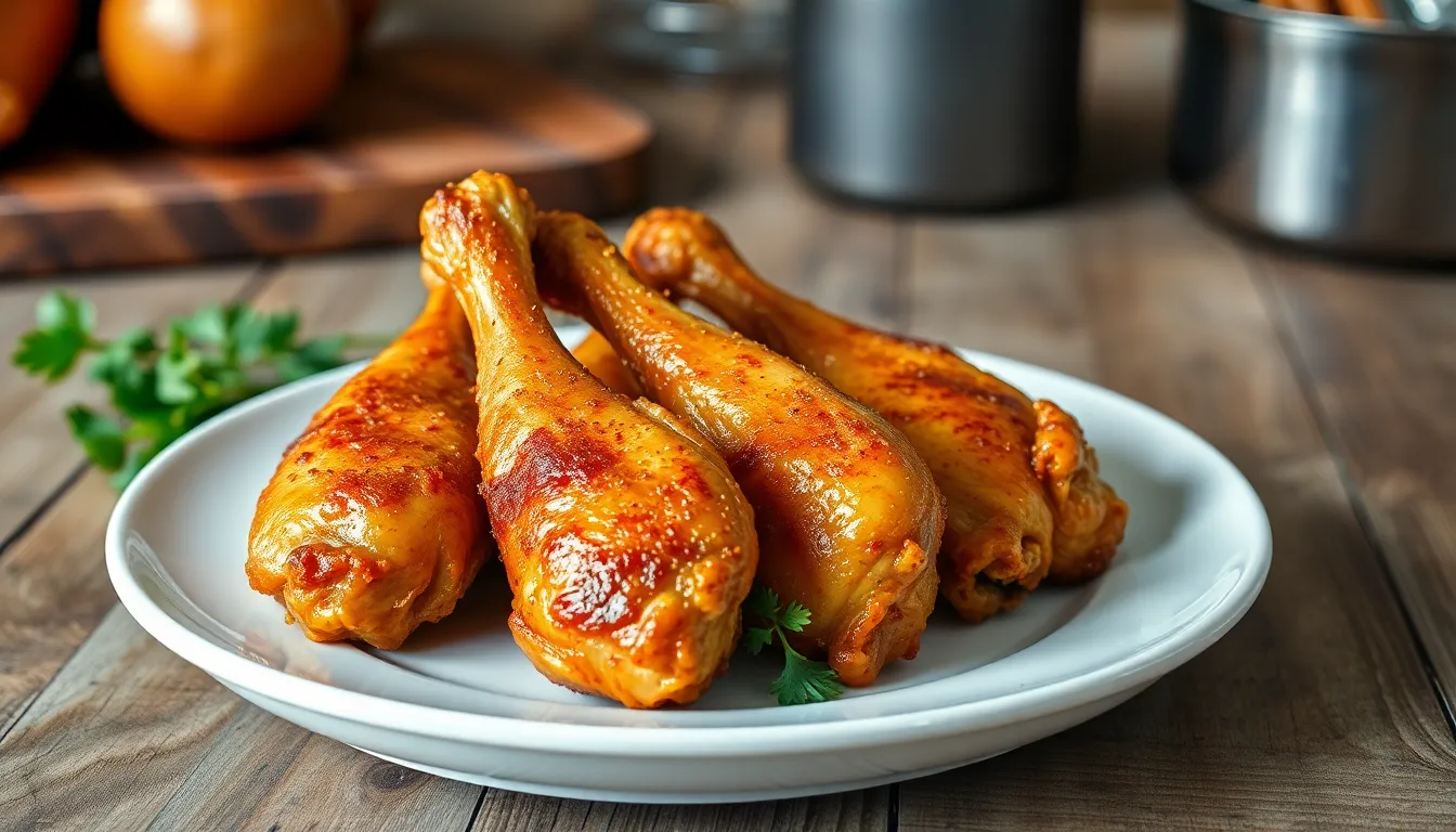 Alternative cooking methods are available if oven roasting isn’t preferred. Grilling offers a smoky flavor, with cooking times between 25 to 30 minutes over medium heat. Air frying cooks drumsticks in about 25 minutes, producing a crispy exterior while using less oil. Slow cooking provides a tender, fall-off-the-bone texture, taking between 4 to 6 hours on low heat. Pressure cooking is another option, reducing the time to about 10 to 15 minutes. Each method yields distinct flavors and textures suitable for various culinary preferences.
